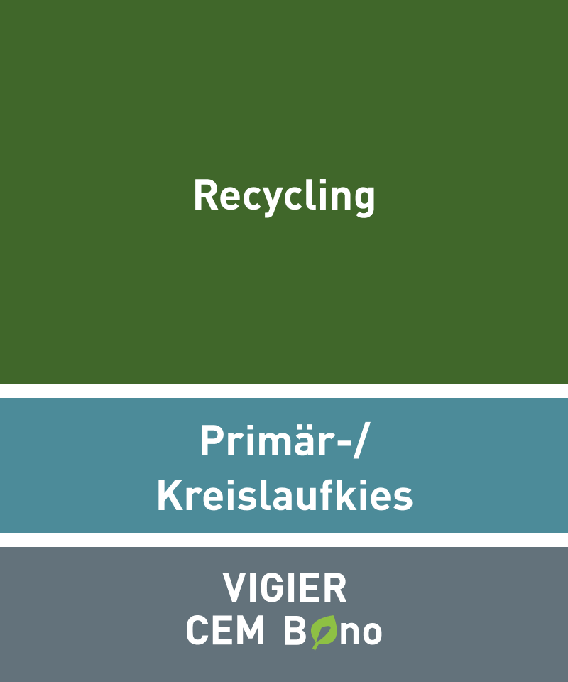 Zusätzlich zur CO₂-Einsparung wird bei ECOPLUS-Produkten durch die Verwendung von Recycling-Gesteinskörnungen aus RC-Misch- wie auch RC-Betongranulat ein wichtiger Beitrag zur Kreislaufwirtschaft geleistet. Die Recycling-Anteile liegen bei 25 – 50%. So werden natürliche Ressourcen geschont und es wird kein Deponieraum für die Entsorgung benötigt.